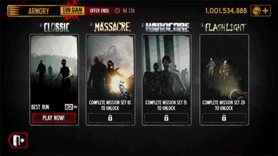 勇敢穿越亡灵谷无尽弹药版是一款极具创意的跑酷游戏。在这个僵尸横行的城市里,你可以随时携带包括枪械和近战武器在内的防护装备,在僵尸群中开辟出一条生路!游戏以其出色的画面和独特的构思脱颖而出,采用了第一人称视角,玩家移动时屏幕会根据方向左右倾斜,碰到障碍物或僵尸时还会剧烈震动,带来身临其境的体验。除了普通的跑酷玩法,游戏中还加入了任务系统,每次游戏都是一次自我挑战,完成任务后可以获得丰厚奖励。如果你在游戏中击毙了僵尸或被僵尸抓住,屏幕上会出现逼真的血迹效果,非常震撼。