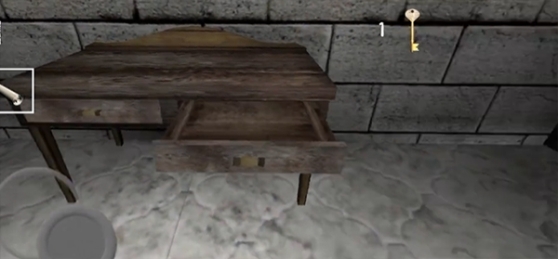 随后继续前行经过一段漫长的走廊,走到尽头可以看到一张桌子,在桌子的抽屉中能找到另一把钥匙,拿到钥匙后即可进入游戏的下一阶段。