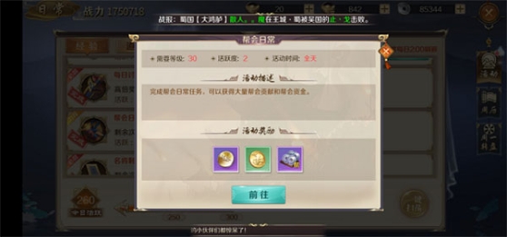 帮会活动由帮会领地战,帮会聚会,帮会养鸟,敌国夺旗组成,奖励丰富,能获得大量的帮会贡献和元宝奖励,建议冒险者们多多参与!