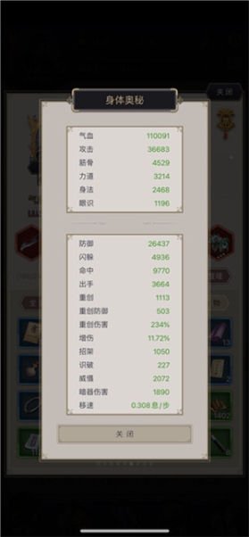 3、依次点击门派——当值长老、江湖——百晓生居、江湖——通宝阁、江湖——庆余堂、江湖——丰泽坊获取大侠之路章节,在庆余堂中购买绿色装备寒玉带和九宫坠后装备(也可购买其他装备),前往地图——关中,直接击败boss或清空地图,找到蓝色的出口返回,此时可以集齐大侠之路前十章,获得秘笈归元心经,增加内力修炼速度53点/12秒。