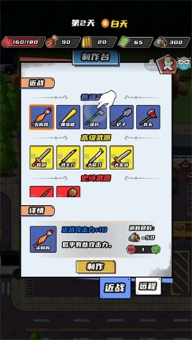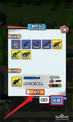 最后在制作台界面选择制作【远程】武器,使用武器击败所有怪物就可以逃出生化镇完成关卡。