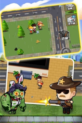 进入场景,我们也就要操控我们的角色在地图中我们能够进入建筑物内搜刮东西,也能够打僵尸取得金钱不过这游戏里面的僵尸还是比较难避开的,一开始一个人还好,但是当人躲起来之后,那些电脑控制的角色就会主动去打僵尸。