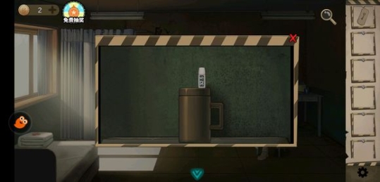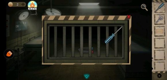 用监控室拿到的钥匙去医务室打开药柜下面的门,拿到人体模型的头和两支手臂。回禁闭室把手臂和人头模型挂到铁链的圆环上,提示说重量不够!原来模型还要拿去楼下牢房的洗手盆中用水浸泡增加重量,才能放到铁环上。把浸泡后的模型放到铁环上,铁链下的铁凳被移开,铁凳后面的开关打开禁闭室灯亮