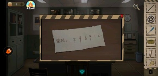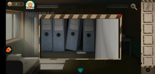打开密码箱门,拿到监控室的密码纸。