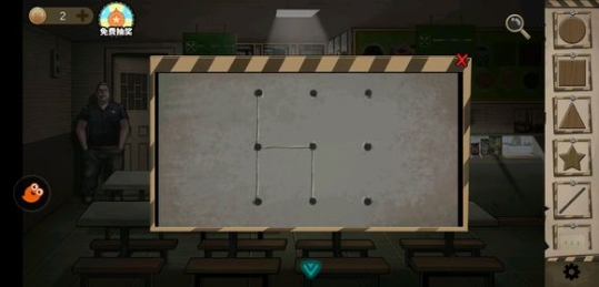 用配制的钥匙打开了牢门,根据A先生的提示到二楼,点击二楼过道牢门下方的栅栏,把三角、方形、五角星和圆形木片分到相应的牢房。
