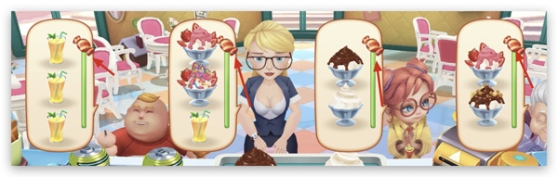 细心地玩家可能已经发现了,在文中的第一张图中,已经把糖给了顾客,所以才能放肆的进行“连连上菜”!