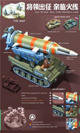 我的战争多人联机游戏无敌版是一款有着卡通风格、能很好模拟近现代战争的手机游戏。在这款游戏里,玩家能够选择加入多个战争阵营,还能收集并培养各阵营厉害的指挥官,投身于近现代那些著名的战役当中。游戏有着丰富的战略和策略玩法,玩家得合理安排不同的兵种,一起协同作战。与此同时,玩家也能使用各种布防策略,在战场上称霸。