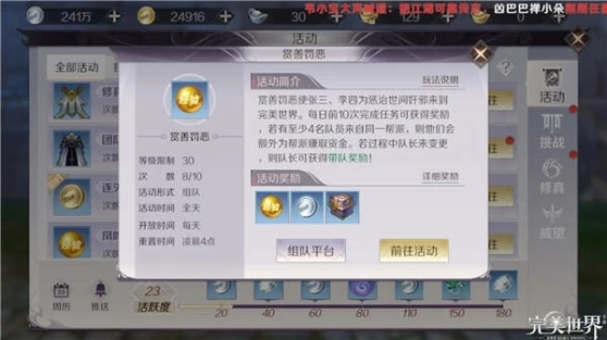 2、如果我们等级比较低,也就是65级之前,这种情况下我推荐大家去刷凤鸣谷或者凤啼涧,对于低等级的玩家来说,这两个副本的经验量还是十分可观的。如果玩家等级较高的话,这两个副本就可以放到后面进行或者直接掠过。之后,我们就要开始经验量数一数二的赏善罚恶了,一般我们可以通过自动匹配寻找队伍,在这我提醒大家一点,为了提高效率,在找到队伍但人数还不齐的时候,可以先不用着急跟随队长,最好的办法是同时接上曲别针换别墅活动,一边跑图一边等人齐,当人数满了,再过去也不迟。而且曲别针换别墅活动就算中断回来也能从中断处继续进行。这样就能为我们节约一定的时间。另外,当我们进行赏善罚恶的过程中,可以使用挂机来完成,然后放下手机去干别的工作即可,但要注意备好恢复药品。