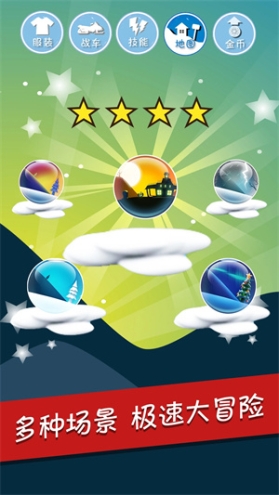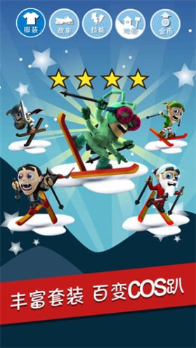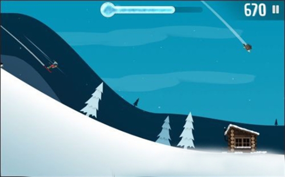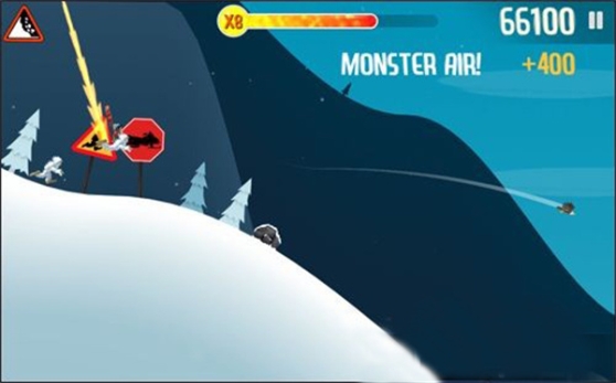 在《滑雪大冒险2》中,不仅可以挑战夺命竞速,还可以滑动屏幕作出特技动作!根据单、双板和坐骑的不同,特技动作也会发生改变!向前、向后、向上、向下赶紧试试吧!!!
