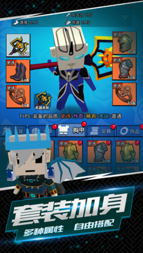 我这一刀下去免广告版下载的无限钻石版,里面有好几十个不一样的人物角色。在这个游戏当中,咱们能够给这些角色换上各种各样的武器、头盔、鞋子还有饰品之类的装备,以此来增强咱们人物的属性。只有在我这一刀下去免广告版下载的无限钻石无限金币版里,把自己的角色弄得越来越强,才能够战胜其他的敌人。