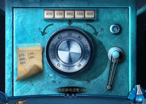 73、档案库,钻床,放钥匙胚、断钥匙,按上下键调整钥匙的形状,与阴影吻合,得到新钥匙。