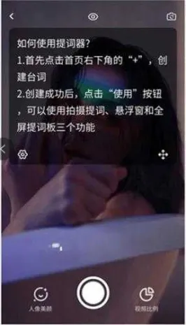 3、拍摄提词用法就是开启Ai智能语音即可体验台词跟着语速走,还有美颜效果自动调节美白与磨皮效果,视频比例设置(橫竖屏等)。