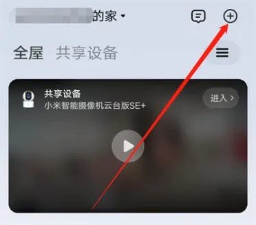 1、手机打工米家APP后,在页面的右上方有一个圆圈内带有“+”号的图标按钮,在上面点击选择。