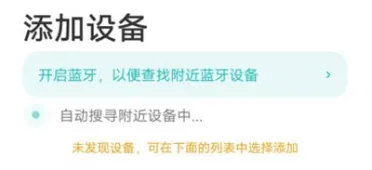 5、如果没有二维码,就返回上一界面去手动添加,在添加设备的下方会自动搜寻附近的蓝牙设备,搜索完成后在其中选择要添加的智能设备即可,但记得蓝牙要处于打开状态时才可以正常搜寻出来。