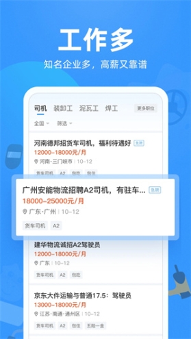 高效找活:每日更新万条司机、押运员、装卸工、快递员、杂工、电工、焊工、铆工、钳工、泥瓦工、油漆工、装修木工、建筑木工招工信息,求职者可筛选联系,也可发布找活名片曝光,提高找活效率;