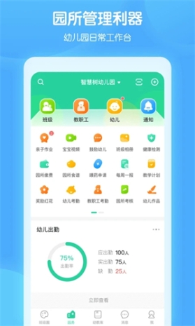 轻松实现考勤信息化管理,只能打卡统计,随时查看全员宝宝以及教职工的出勤情况。