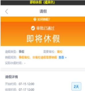 1、请假审批通过后,系统会根据你的请假时间,自动提示你即将休假或正在休假中。