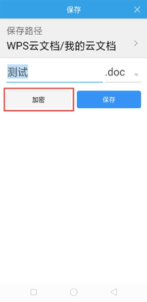 1、新建文档在保存时,界面中有「加密」选项,点击即可进行加密设置。