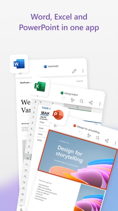 1、在一个应用中使用Word、Excel和PowerPoint实现工作效率的移动应用。