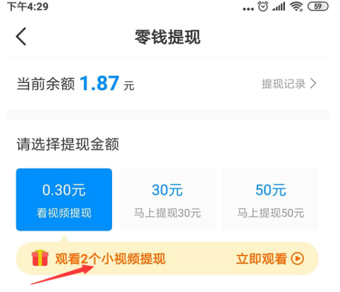 PS:目前淘小说0.3元提现,需要先看完两个视频广告。
