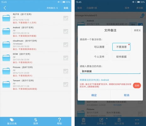 这里特别说明一下,Tencent其实就是腾讯系的软件产生的文件夹都在这,往往都是手机上最大的文件夹,动辄几个G都有可能,是需要清理的大户,楼主备注为“不要清理”只是为了避免不小心删除了聊天记录里的照片和语音等