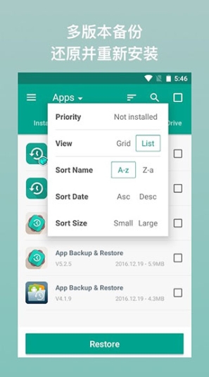 这是一款极其强大的应用数据备份工具,具备全面的功能,允许用户备份、分享和管理Android设备上的应用及数据,提供更多实用功能!无需root权限即可备份和共享任何系统/内置/SD卡上的应用程序(APK和/或应用数据)。你还可以备份应用,并且Alpha Backup Pro 支持多种存储方式,例如内置存储、可移动SD卡、USB驱动器(OTG)以及各种云存储服务,其功能远超钛备份。甚至可以通过Alpha Backup Pro 从各类存储设备导入备份,包括内置存储设备。此外,本应用引入了一种新的文件类型——.sapk,这种文件类型类似于APK,但包含了应用的多个拆分部分。此类文件仅受此应用支持,也只能通过此应用创建。欢迎有需求的用户免费下载试用。