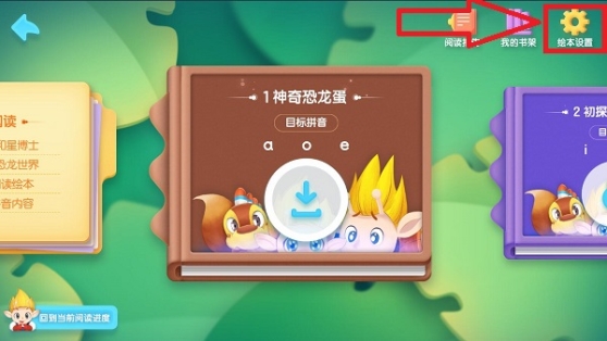 5、关于字体的设置:字体大小的设置,先点击拼音阅读然后点击绘本设置,就可以看看到字体大小的设置了