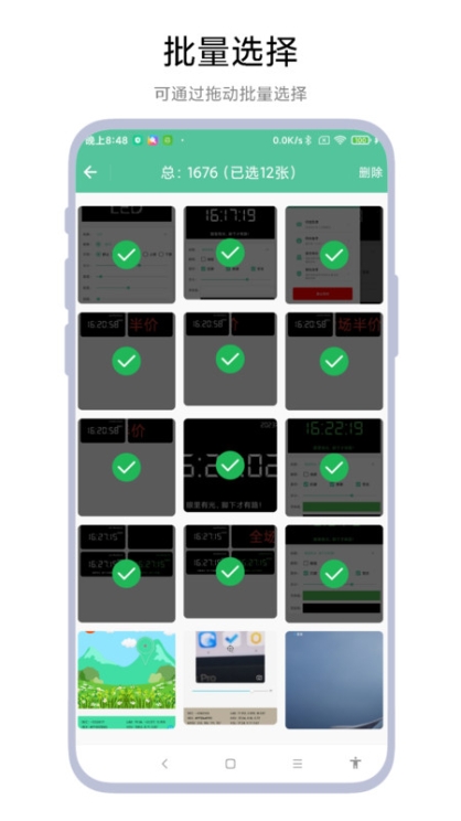 4、该软件提供了批量处理功能,用户可以同时选中多张图片进行批量删除、批量共享等操作,大大提高了用户的效率。