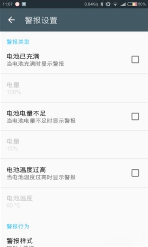 2、支持电池警报设置,可以设置电池提醒设置,比如当电池充满、电池电量不足时提醒你。