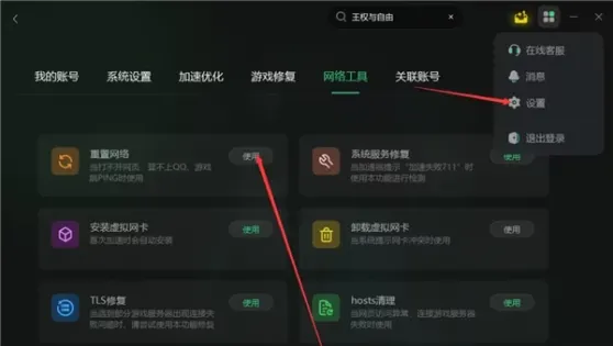 具体操作:电脑网络异常时,玩家们会遇到漫游者永恒世界联机失败/无法联机/匹配不了的问题,可以如下图,找到网络工具箱,点击重置网络的功能来一键重置。