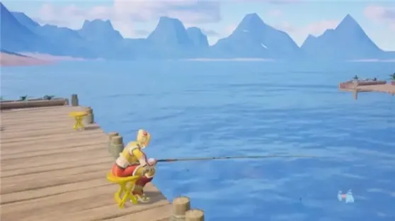 我们来到海边的钓鱼小屋即可钓鱼,钓鱼过程中看见鱼咬钩,水面有浪花波动时提竿,基本都是可以钓上来哒~