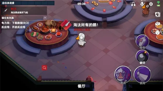 5、在左上方可以看到自己的任务、需要淘汰鹅或者破坏飞船,开启反应堆等;