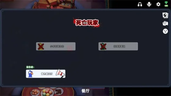 7、这里可以看到死亡玩家,然后通过观察可疑的行为来确定鸭子的身份,点击报告按钮可以报告这个尸体;
