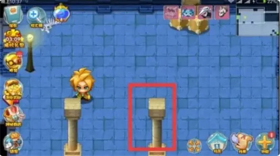之后继续向右侧走,进入右侧房间,点击如图石柱。