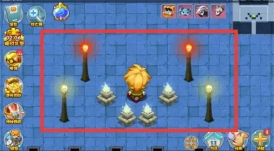 解除所有机关后,顺着通道走,站在4个灯柱中间。