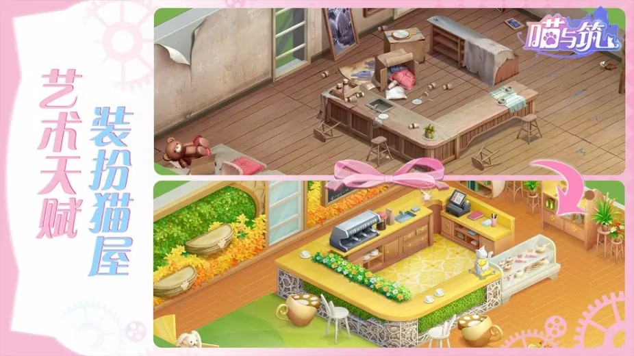 喵与筑手游是一款休闲趣味减压游戏,其玩法非常的丰富多彩,还有最新的消除玩法,玩家们可以通过消除来开启更多的关卡和内容,游戏的画面设计上非常的精美,还有超级可爱小猫咪,玩家还可以装扮自己的房间,建造一个专属的猫咪咖啡厅,超级精彩有趣的休闲玩法。
