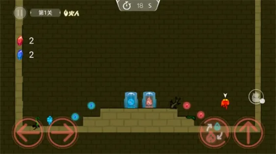 3、游戏中设置冰人和火人2个角色,玩家需要分别控制他们,破解机关。