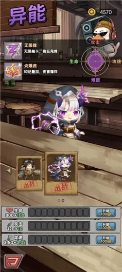 2、战斗时可选择不同的卡牌技能,这些技能可供角色在战斗时使用。