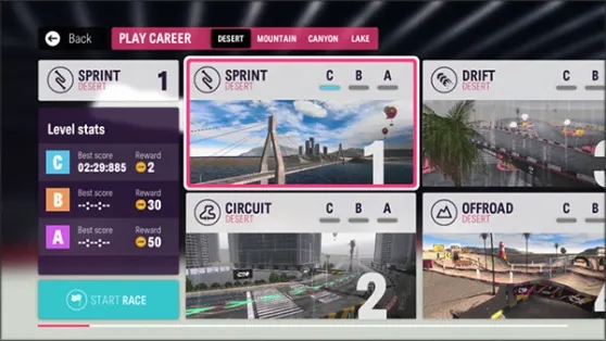 3、除竞速以外,拉力地平线中文版还有多种模式,例如闯关、比赛模式以及每日挑战等多种多样的游戏模式。