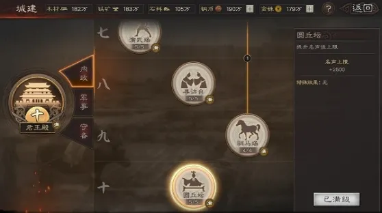 11)圆丘坛:提高名声值上限(就是提高领地上限)