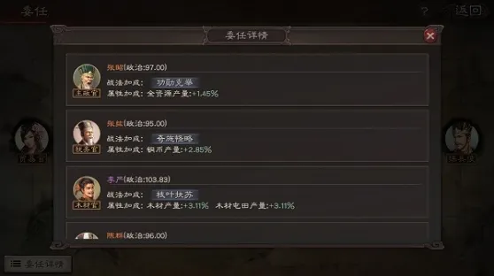 【黑板备注】有的官员我推荐使用满红的三星或者四星的将,加点全点政治或者魅力(按所需属性来)。