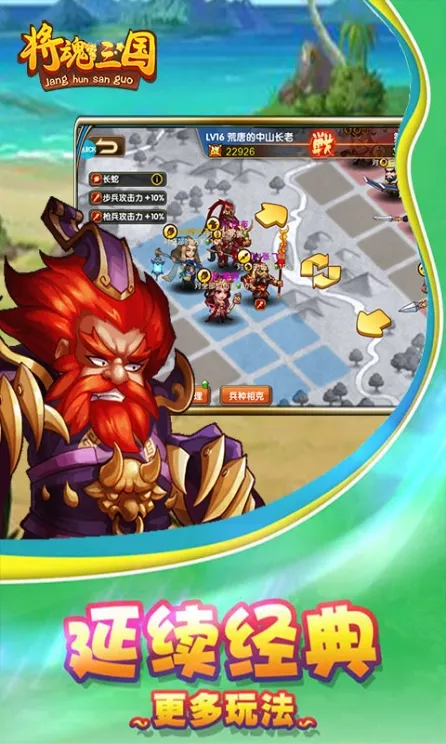 更为体现游戏特色的将魂三国,可以说将游戏武将这个系统体现的淋漓尽致。你仍然可以在游戏中统率英雄武将进行攻城略地,武将代你出征,左膀右臂伴你左右,三国的征程更加顺利!