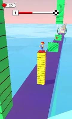1、玩家会看到很多的赛道闯关模式,需要不断的堆叠不同颜色的方块,站的越高越好。