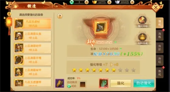 玩家可以使用强化符,将装备强化升星。随着装备升星,属性将可以提升。