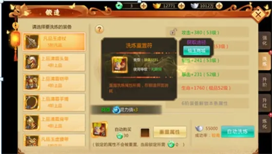 对已经洗出的属性不满意,可以使用洗炼重置符,重置出强力极品属性。更快更好提升属性。