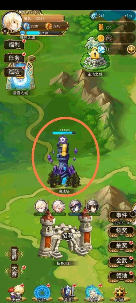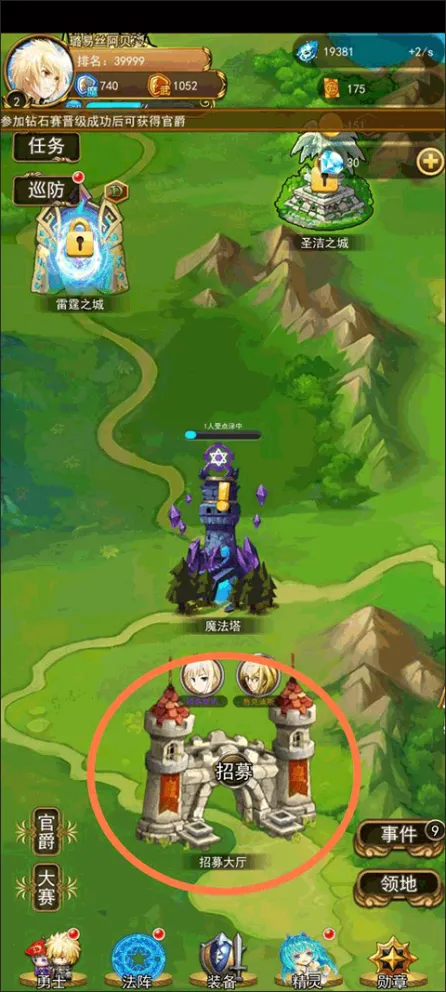 游戏玩法主要以经营养成为重点,玩家需要招聘到很多勇士,为建设自己的领地不断添砖加瓦,如果你刷到了橙色还有紫色的勇士,不要犹豫,直接招募了,小编现在的玩法就是没到紫色品质的勇士绝对不招。
