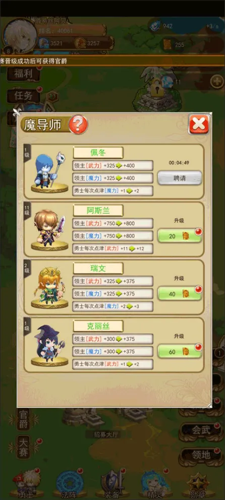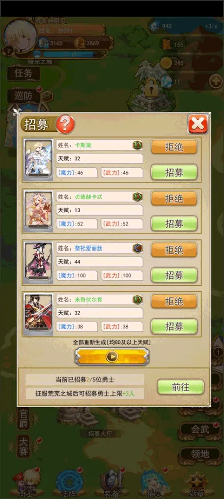 招募到勇士了那就得培养它,这个时候就需要一个魔导师对勇士进行教导,进入到招募界面后大家需要根据自己培养勇士的长处进行选择,让勇士更加的强力。