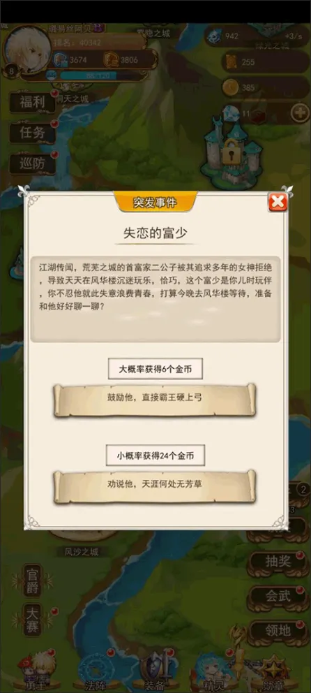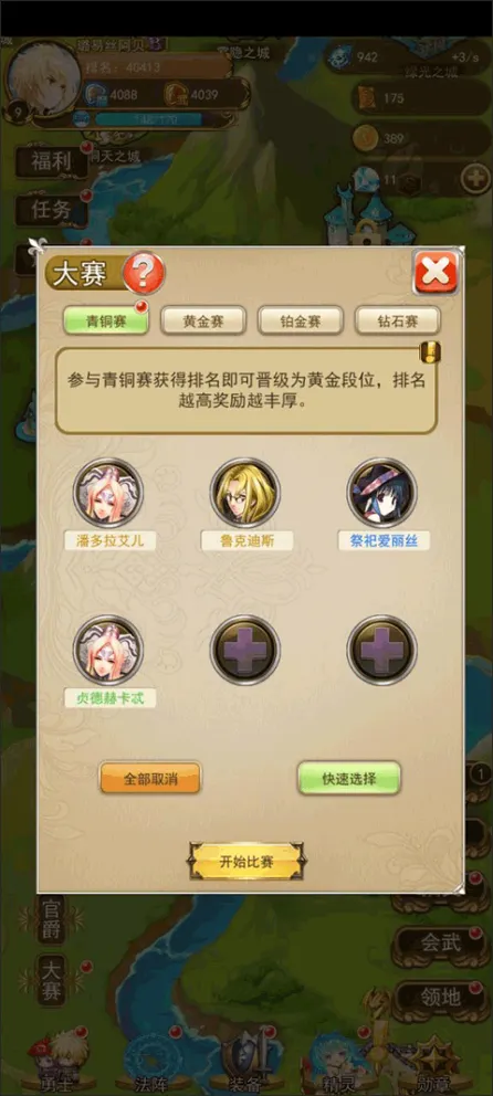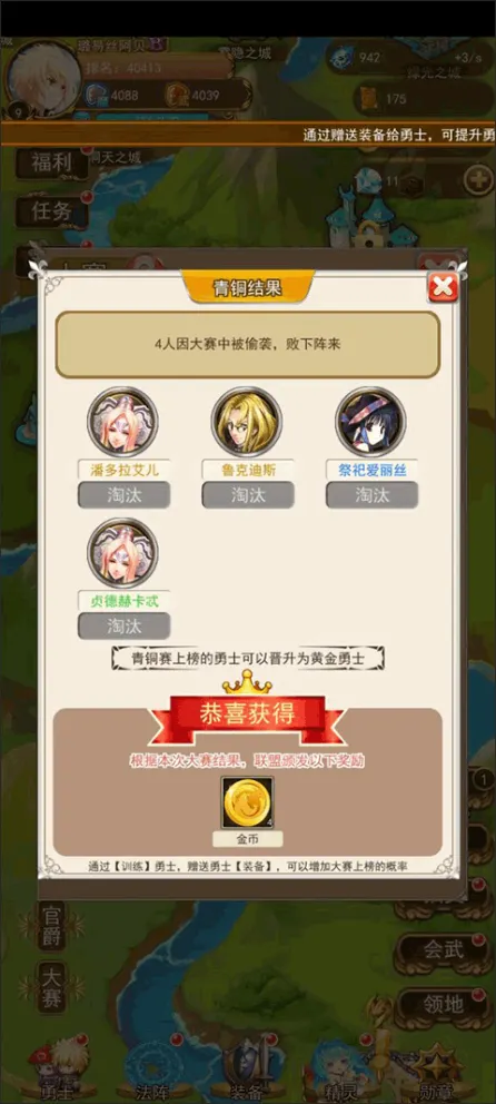 等勇士培养起来了可以去通过大赛获取海量的资源,加快建设的进度,当然大赛也是会有不确定性的,在开始前会有各种各样的不确定因素让你输掉。(别问小编怎么知道的,小编已经因为这些不确定因素输了好几次……)