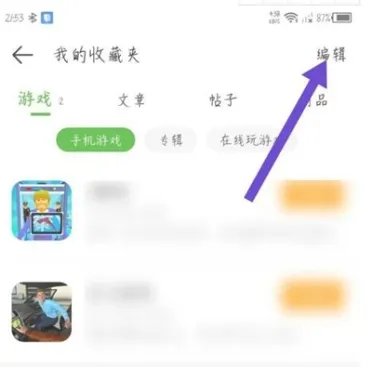 2、进入到收藏夹里面,点击右上角的编辑。如图所示