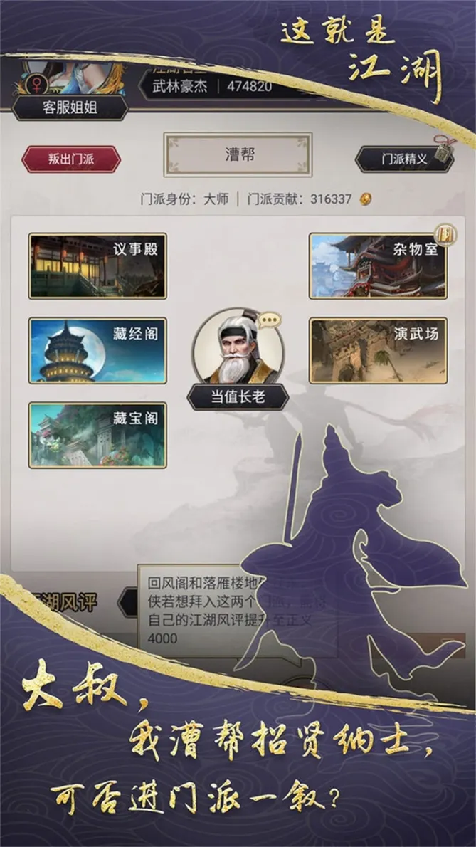 在这就是江湖内置 MOD 版里,各个门派势均力敌,玩家能够随便选一个加入,还能去学好多功法和武学。要是你想在江湖里混得更好,甚至能够创立属于自己的门派,把其他侠客招募进来,让门派越来越兴旺。而且呢,还能够打造防具和武器,使自己的战斗力变得更强。